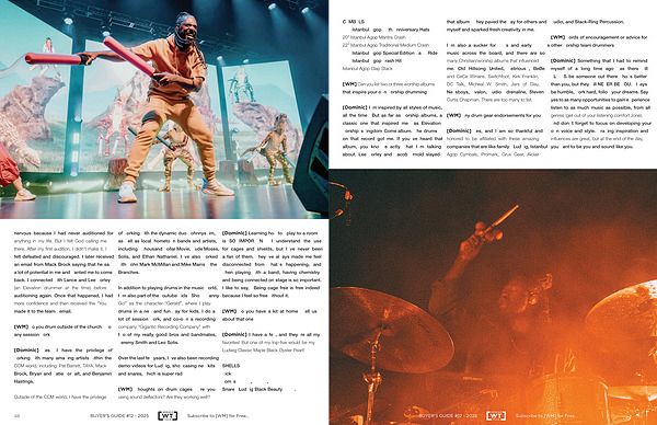 [ Dominic ] I’ m inspired by all styles of music, all the time! But as far as worship albums, a classic one that inspired me was Elevation Worship’ s Kingdom Come album. The drums on that record got me. If you’ ve heard that album, you know exactly what I’ m talking about. Lee Worley and Jacob Arnold slayed that album! They paved the way for others and myself and sparked fresh creativity in me.