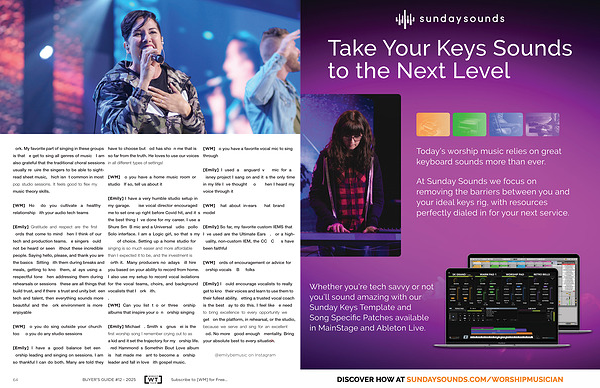 Whether you’ re tech savvy or not you’ ll sound amazing with our Sunday Keys Template and Song Specific Patches available in MainStage and Ableton Live.
