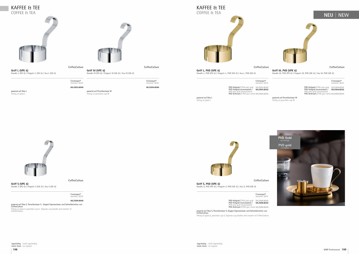 PVD Hellgold / PVD pale gold 59.2504.8242 PVD Hellgold stonewashed / 59.2504.8252 PVD pale gold stonewashed PVD Anthrazit / PVD gun metal 59.2504.8244 |