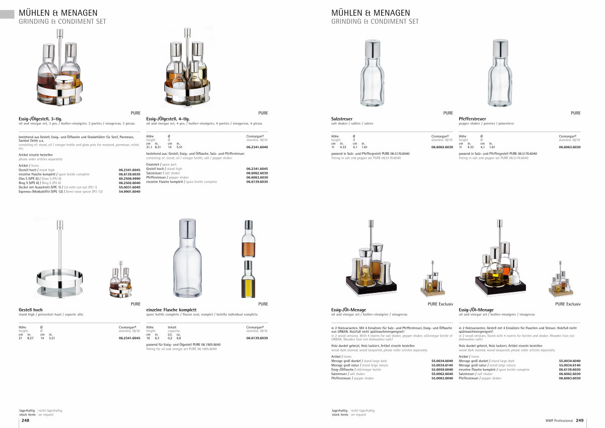 bestehend aus: Gestell, Essig- und Ölflasche, Salz- und Pfefferstreuer consisting of: stand, oil / vinegar bottle, salt / pepper shaker