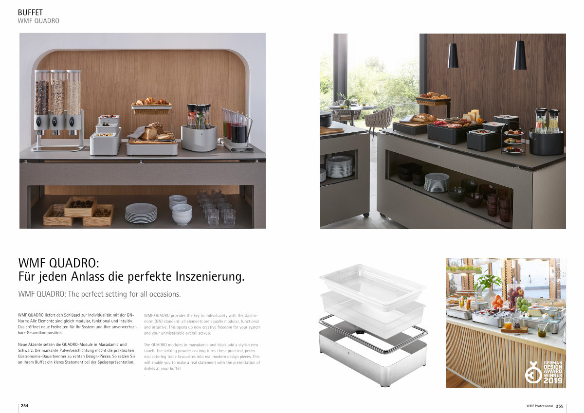 WMF QUADRO provides the key to individuality with the Gastronorm( GN) standard: all elements are equally modular, functional and intuitive. This opens up new creative freedom for your system and your unmistakable overall set-up.