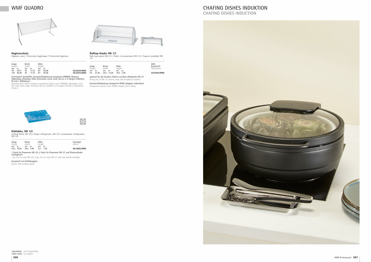 Cromargan ® geschliffen, Kunststoffabdeckung transparent( PMMA), Neigung Abdeckung einstellbar, Höhe Unterkante vorne mind. 38 cm, in 2 Längen erhältlich: M und L. Abbildung L Stainless steel 18 / 10, brushed, transparent plastic cover( PMMA), adjustable cover tilt, front lower edge minimum 38 cm, available in 2 lengths: M and L. Illustration shows L