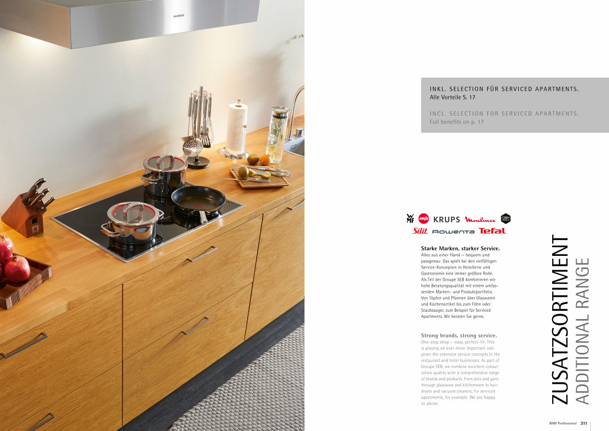 Alles aus einer Hand— bequem und passgenau: Das spielt bei den vielfältigen Service-Konzepten in Hotellerie und Gastronomie eine immer größere Rolle. Als Teil der Groupe SEB kombinieren wir hohe Beratungsqualität mit einem umfassenden Marken- und Produktportfolio. Von Töpfen und Pfannen über Glaswaren und Küchenartikel bis zum Föhn oder Staubsauger, zum Beispiel für Serviced Apartments. Wir beraten Sie gerne.