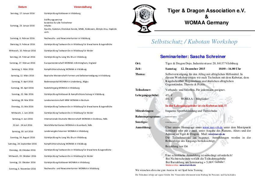 In der Lehrgangsgebühr ist ein Kubotan inkl.!!!