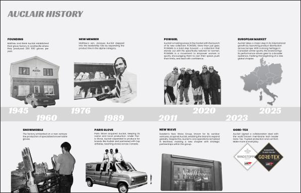 Paris Glove acquired Auclair, keeping its name and local production. Under Paris Glove, Auclair expanded to produce for brands like Kodiak and partnered with top athletes, reaching stores across Canada.