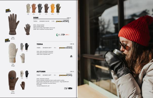 SHELL: Sheep leather PALM: Sheep leather INSULATION: 100g Thermolite ® all around LINER: 100 % Polyester brushed fleece