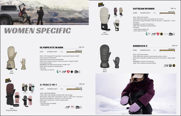 SHELL: DWR Goat leather PALM: DWR Goat leather & Amara with silicone grip INSULATION: 100g 3M™ Thinsulate™ Type EC( 78 % Post Consumer Recycled Polyester) all around + 5mm foam BOH LINER: Removable liner in 100 % Polyester Boa FEATURES: