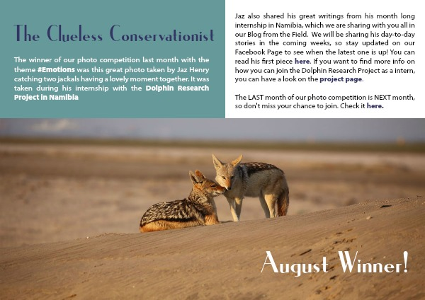 Jaz also shared his great writings from his month long internship in Namibia, which we are sharing with you all in our Blog from the Field. We will be sharing his day-to-day stories in the coming weeks, so stay updated on our Facebook Page to see when the latest one is up! You can read his first piece here. If you want to find more info on how you can join the Dolphin Research Project as a intern, you can have a look on the project page.