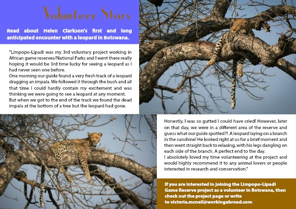 If you are interested in joining the Limpopo-Lipadi Game Reserve project as a volunteer in Botswana, then check out the project page or write