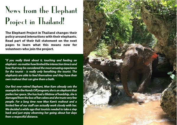 The Elephant Project in Thailand changes their policy around interactions with their elephants. Read part of their full statement on the next pages to learn what this means now for volunteers who join the project.