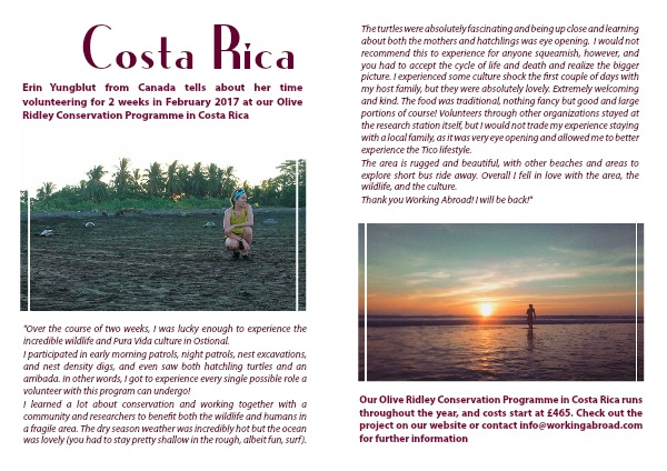 Erin Yungblut from Canada tells about her time volunteering for 2 weeks in February 2017 at our Olive Ridley Conservation Programme in Costa Rica
