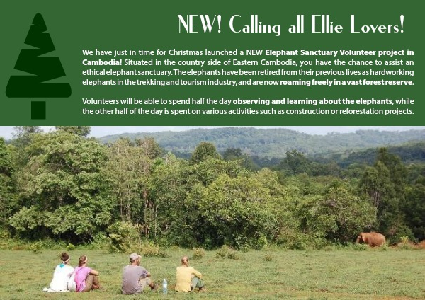 We have just in time for Christmas launched a NEW Elephant Sanctuary Volunteer project in Cambodia! Situated in the country side of Eastern Cambodia, you have the chance to assist an ethical elephant sanctuary. The elephants have been retired from their previous lives as hardworking elephants in the trekking and tourism industry, and are now roaming freely in a vast forest reserve.