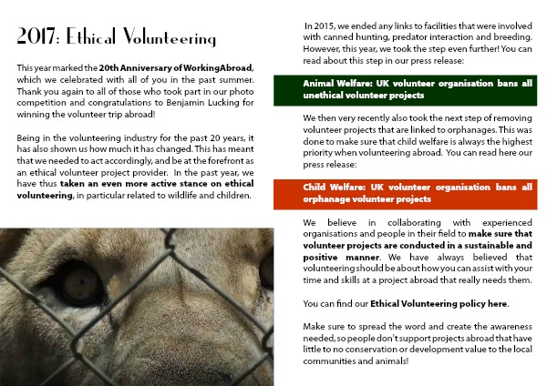 This year marked the 20th Anniversary of WorkingAbroad, which we celebrated with all of you in the past summer. Thank you again to all of those who took part in our photo competition and congratulations to Benjamin Lucking for winning the volunteer trip abroad!