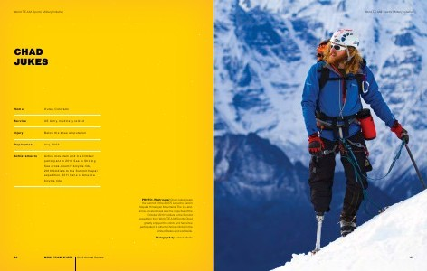 Photos:( Previous page) World T. E. A. M. Sports creates challenging and inspiring events for disabled and able-bodied participants. Events such as Adventure TEAM Challenge( Top-left), the Soldiers to the Summit climb of Nepal’ s 20,075-foot Lobuche East in 2010( Center-left), and the Sea to Shining Sea cross-country ride in 2010( Top-right, right and bottom) have changed the lives of the participating athletes, sponsors, volunteers and spectators.