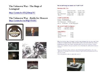The Unknown War - The Siege of Leningrad http://youtu.be/fXQlJrttpOU The Unknown War -Battle for Moscow http://youtu.be/zu36IgVPcRU