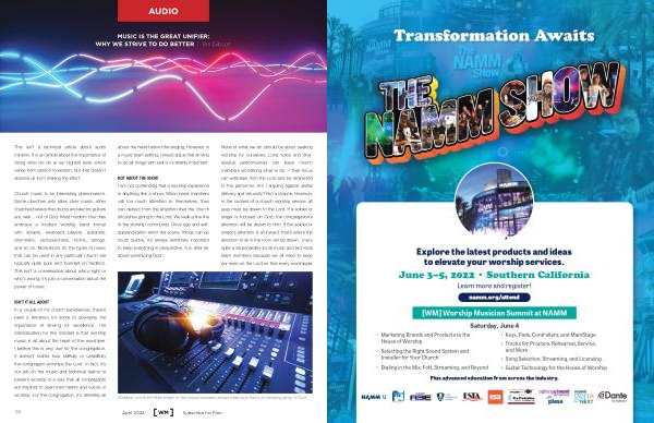 ISN ’ T IT ALL ABOUT In a couple of my church experiences , there ’ s been a tendency for some to downplay the importance of striving for excellence . The rationalization for this mindset is that worship music is all about the heart of the worshiper . I believe this is very true for the congregation . It doesn ’ t matter how skillfully or unskillfully the congregant worships the Lord . In fact , it ’ s our job on the music and technical teams to present worship in a way that all congregants are inspired to open their hearts and voices in worship . For the congregation , it ’ s definitely all