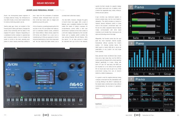 The new A640 , however , changes the game in Aviom ’ s favor once again . With a suite of features and a simplified interface the A640 meets the needs of today ’ s musicians for comprehensive control within a slick user environment . Centered on the mixer surface is a full color display bracketed by twin encoder knobs and a toggling switch scrolling the view among Channel , Mix and Names . With this layout , it is an easy process to select 36 channels from up to 64 on the network ,