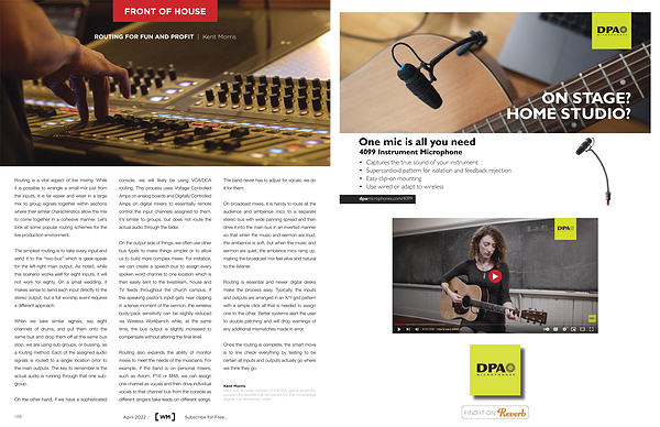 The simplest routing is to take every input and send it to the “ two-bus ” which is geek-speak for the left-right main output . As noted , while this scenario works well for eight inputs , it will not work for eighty . On a small wedding , it makes sense to send each input directly to the stereo output , but a full worship event requires a different approach .