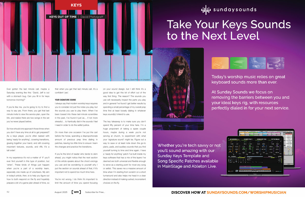 Today’ s worship music relies on great keyboard sounds more than ever.