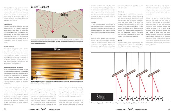 TREATING SURFACES Most acoustic designs incorporate a blend of hard and soft surfaces , controlling reflections rather than eliminating them . This provides a comfortable and creative environment . A recording studio that has been overly deadened using lots of absorptive surfaces , lacks life — it is an unnatural listening environment and feels uncomfortable to most listeners .