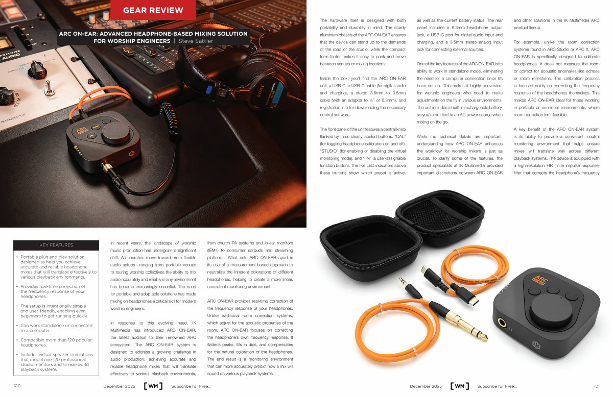 In response to this evolving need, IK Multimedia has introduced ARC ON-EAR, the latest addition to their renowned ARC ecosystem. The ARC ON-EAR system is designed to address a growing challenge in audio production: achieving accurate and reliable headphone mixes that will translate effectively to various playback environments, from church PA systems and in-ear monitors( IEMs) to consumer earbuds and streaming platforms. What sets ARC ON-EAR apart is its use of a measurement-based approach to neutralize the inherent colorations of different headphones, helping to create a more linear, consistent monitoring environment.
