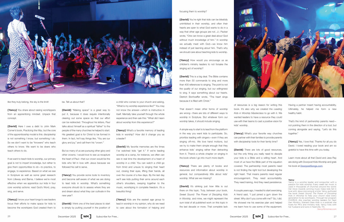 [ Yancy ] I know your heart longs to see leaders focus their efforts to make space for kids to become the worshipers God created them to be. Tell us about that?