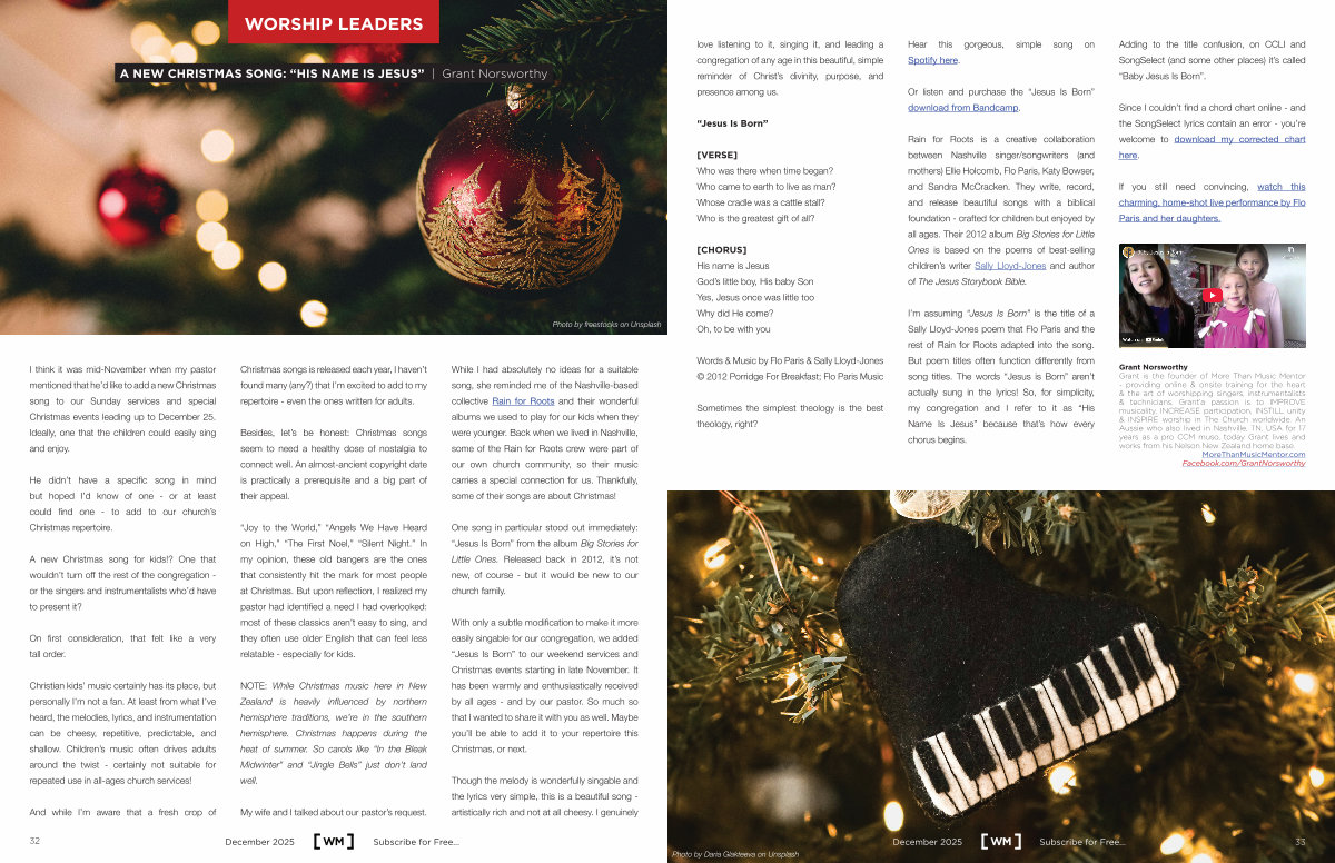 I’ m assuming“ Jesus Is Born” is the title of a Sally Lloyd-Jones poem that Flo Paris and the rest of Rain for Roots adapted into the song. But poem titles often function differently from song titles. The words“ Jesus is Born” aren’ t actually sung in the lyrics! So, for simplicity, my congregation and I refer to it as“ His Name Is Jesus” because that’ s how every chorus begins.