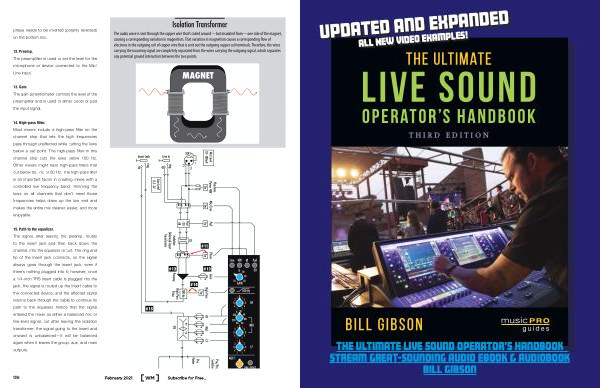 15 . Path to the equalizer . The signal , after leaving the preamp , routes to the insert jack and then back down the channel , into the equalizer circuit . The ring and tip of the insert jack connects , so the signal always goes through the insert jack , even if there ’ s nothing plugged into it ; however , once a 1 / 4-inch TRS insert cable is plugged into the jack , the signal is routed up the insert cable to the connected device , and the affected signal returns back through the cable to continue its path to the equalizer . Notice that the signal entered the mixer as either a balanced mic or line-level signal , but after leaving the isolation transformer , the signal going to the insert and onward is unbalanced — it will be balanced again when it leaves the group , aux , and main outputs .
