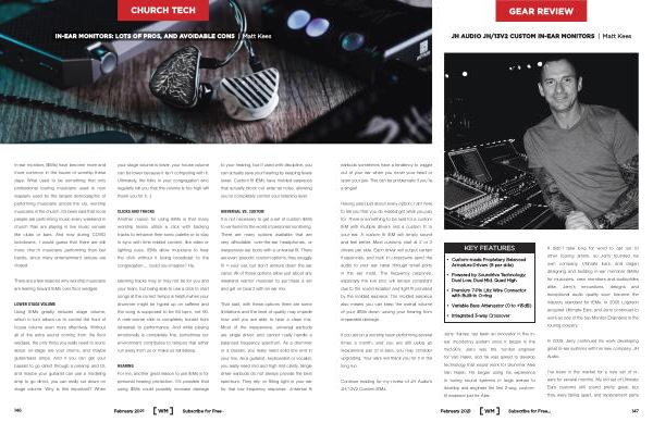 In-ear monitors ( IEMs ) have become more and more common in the house of worship these days . What used to be something that only professional touring musicians used is now regularly used by the largest demographic of performing musicians across the US , worship musicians in the church . It ’ s been said that more people are performing music every weekend in church than are playing in live music venues like clubs or bars . And now during COVID lockdowns , I would guess that there are still more church musicians performing than bar bands , since many entertainment venues are closed .