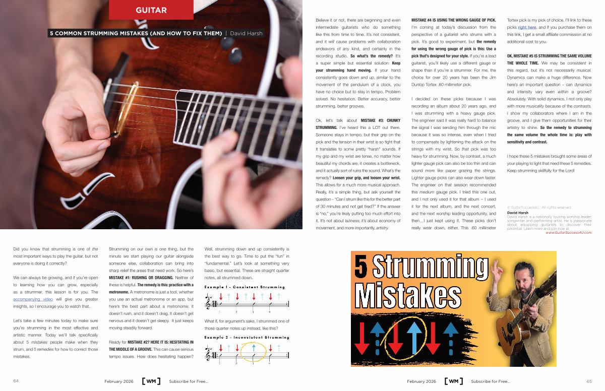 David Harsh David Harsh is a nationally touring worship leader, songwriter and performing artist. He is passionate about equipping guitarists to discover their potential. Learn more and join now at www. GuitarSuccess4U. com February 2026 Subscribe for Free... 65
