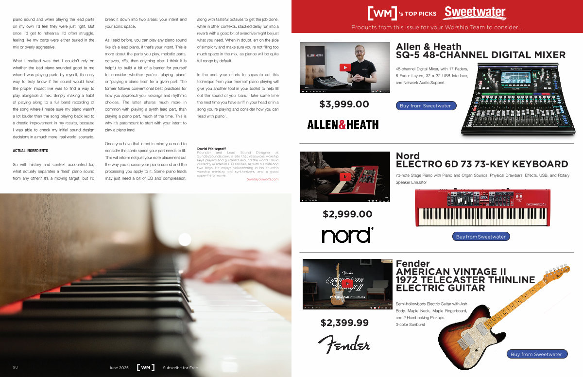 piano sound and when playing the lead parts on my own I’ d feel they were just right. But once I’ d get to rehearsal I’ d often struggle, feeling like my parts were either buried in the mix or overly aggressive.