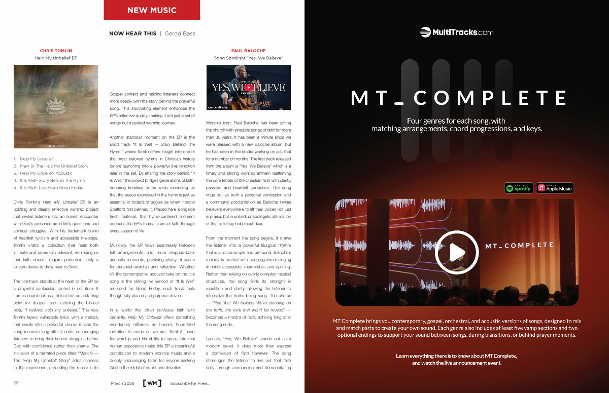 The title track stands at the heart of the EP as a prayerful confession rooted in scripture. It frames doubt not as a defeat but as a starting point for deeper trust, echoing the biblical plea,“ I believe; help my unbelief.” The way Tomlin layers vulnerable lyrics with a melody that swells into a powerful chorus makes the song resonate long after it ends, encouraging listeners to bring their honest struggles before God with confidence rather than shame. The inclusion of a narrated piece titled“ Mark 9— The‘ Help My Unbelief’ Story” adds richness to the experience, grounding the music in its