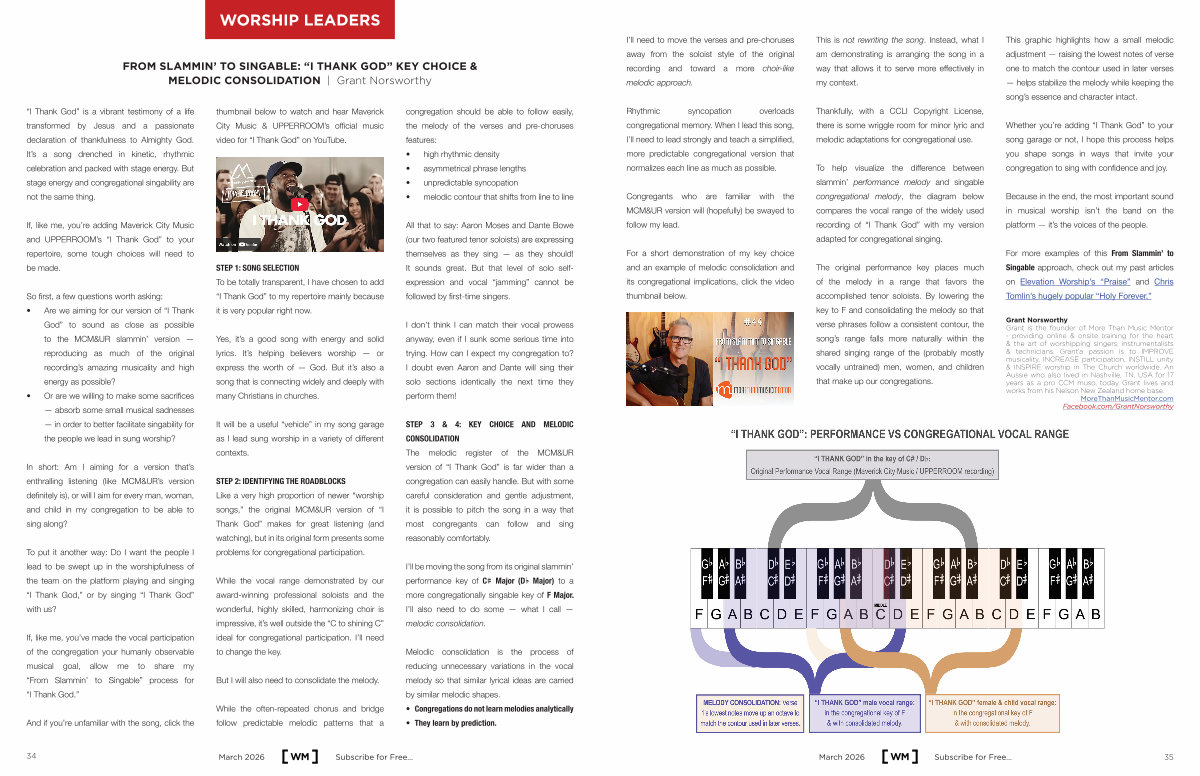 Whether you’ re adding“ I Thank God” to your song garage or not, I hope this process helps you shape songs in ways that invite your congregation to sing with confidence and joy.