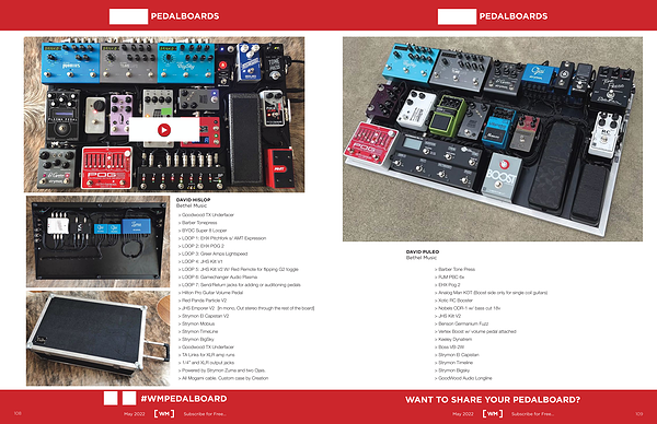 > Barber Tone Press > RJM PBC 6x > EHX Pog 2 > Analog Man KOT ( Boost side only for single coil guitars ) > Xotic RC Booster > Nobels ODR-1 w / bass cut 18v > JHS Kilt V2 > Benson Germanium Fuzz > Vertex Boost w / volume pedal attached > Keeley Dynatrem > Boss VB-2W > Strymon El Capistan > Strymon Timeline > Strymon Bigsky > GoodWood Audio Longline