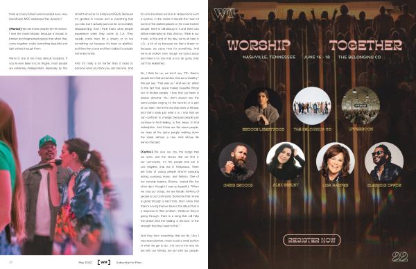 [ Carlos ] We love our city , the songs that we write , and the stories that we find in our community . It ' s the people that live in Los Angeles , that live in Hollywood . There are tons of young people who ' re pursuing acting , pursuing music , and fashion . One of our worship leaders , Brooks , posted this the other day I thought it was so beautiful . “ When we sing our songs , we are literally thinking of people in our community . Someone that I know is going through a hard time , that I know that there ' s a song that we have in the album that is a response to their problem . Whatever they ' re going through , there is a song that will help the person find the healing or the love , or the strength that they need to find .”