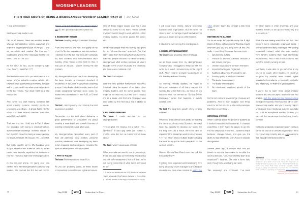 In this two-part article , I ’ m going over nine distinct ways that disorganization costs worship leaders . We covered the first five last month .