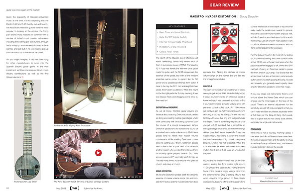 The rebirth of the Maestro line of effects is well worth celebrating , hence why review each of them in successive issues of [ WM ]. The Maestro FZ-1 Fuzz was literally the first-ever drive pedal made for guitar , and the FZ-M reissue nails the essence of the pedal , but with all the modern amenities we ’ ve come to expect like 9v DC power and a pedal board friendly form factor . If back in the day the FZ-1 had a sibling Distortion pedal , the Invader would be it . While this might not be the right pedal for Sunday morning , if you love Classic Rock and chugging some Drop D , then read on !