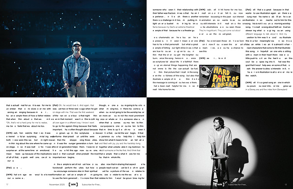 [ Pat ] Well, that’ s a great, because in that I wanted to use illustration again, and there’ s a young man, his name’ s Tab Will and he’ s an illustrator. And so, I reached out to him for this song. This is not like a Sunday morning worship song. It’ s really a song about faith and trust and stewarding what God’ s giving you and using different language to talk about it. And my question to him was like, could you illustrate this in a fun, meaningful way? And so, it’ s a black and white video, and it’ s almost like handdrawn characters that come to life that illustrate this song. And hopefully anyone who’ s sitting with a dream in their heart there … needed a little push to do it, and they feel like,“ Man, this could be God speaking into it.” That was the goal that it would help awaken some of that. So yeah, the answer is always interested in it. And I have kids in illustration is all over every movie they watch.