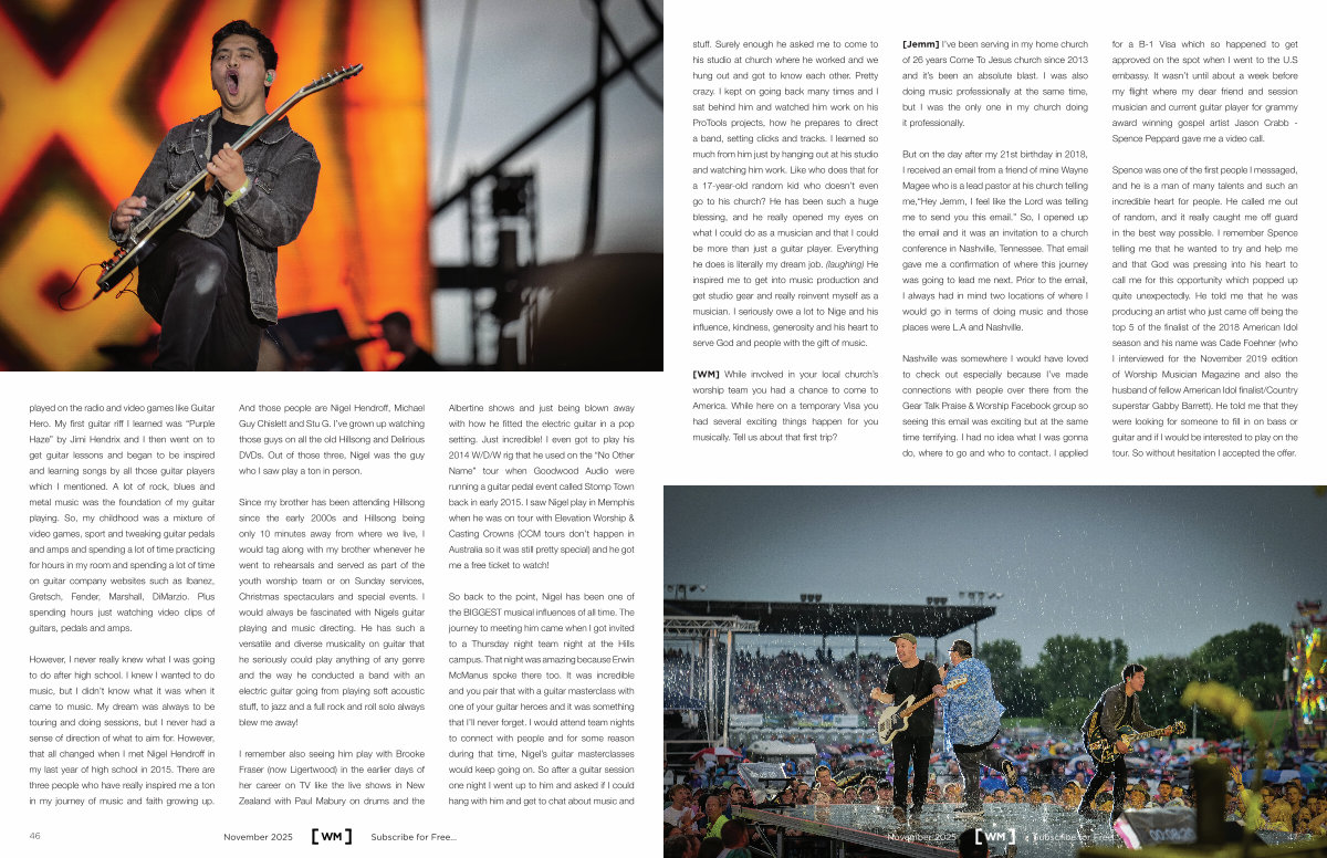 stuff. Surely enough he asked me to come to his studio at church where he worked and we hung out and got to know each other. Pretty crazy. I kept on going back many times and I sat behind him and watched him work on his ProTools projects, how he prepares to direct a band, setting clicks and tracks. I learned so much from him just by hanging out at his studio and watching him work. Like who does that for a 17-year-old random kid who doesn’ t even go to his church? He has been such a huge blessing, and he really opened my eyes on what I could do as a musician and that I could be more than just a guitar player. Everything he does is literally my dream job.( laughing) He inspired me to get into music production and get studio gear and really reinvent myself as a musician. I seriously owe a lot to Nige and his influence, kindness, generosity and his heart to serve God and people with the gift of music.