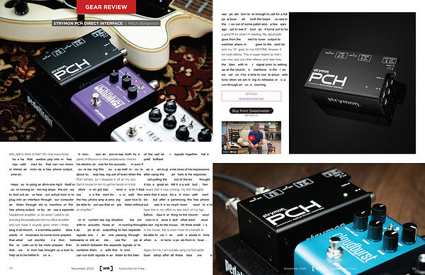 I asked Sam to give me more of his impressions after using the PCH and here is his response.“ Just pulling the PCH out of the box, I thought it looked great and felt like a solid build. When I heard that it was coming, my first thoughts were that it would be a Strymon-quality direct box, but after experiencing the headphone out, I see it’ s so much more! I would love to have this in my office to test each of my rigs before I haul everything to the church. I would know in advance exactly what sound I would be sending to the house. With three small kids in the house, this is even more of a benefit to be able to quickly and quietly evaluate my tone when I add or remove pedals from my board.”