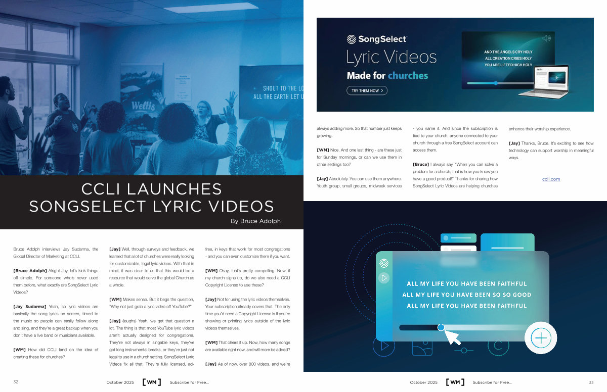 [ Jay ] Thanks, Bruce. Itβ s exciting to see how technology can support worship in meaningful ways. ccli. com