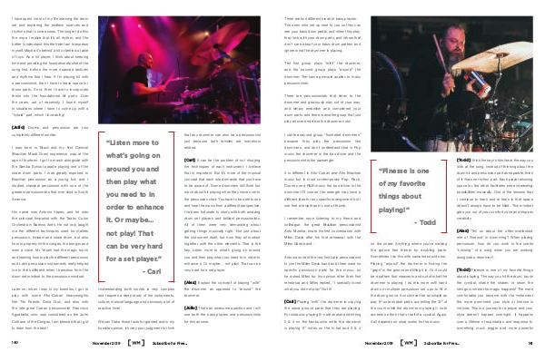 [Carl] Playing “with” the drummer is copying play 8 note shaker parts, accenting the “&” of the more prominent your style or finesse is