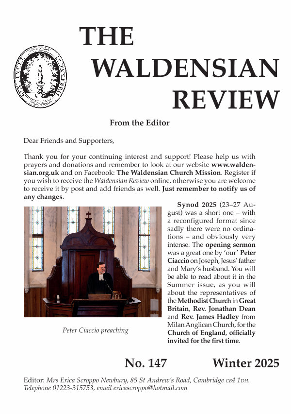 Thank you for your continuing interest and support! Please help us with prayers and donations and remember to look at our website www. waldensian. org. uk and on Facebook: The Waldensian Church Mission. Register if you wish to receive the Waldensian Review online, otherwise you are welcome to receive it by post and add friends as well. Just remember to notify us of any changes.
