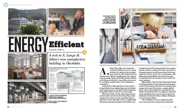 Lange & Sohne added a new, second, production facility in Glashütte last year not to ramp up production, but to make its in-house watchmaking procedures more efficient than they had been previously. And in addition to streamlining many of the company’ s component-making, engraving and finishing departments within the new 58,000-square-feet facility, A. Lange & Söhne also made sure the new building was itself as efficient as the watchmaking processes within it.