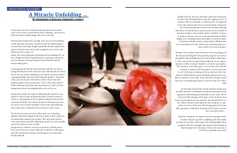 Constant bedside prayers and positive affirmations were extended each day which saw a marked improvement with every word spoken.