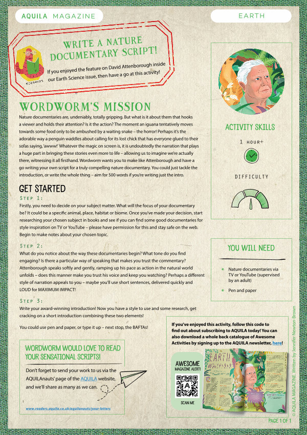 If you enjoyed the feature on David Attenborough inside our Earth Science issue, then have a go at this activity!