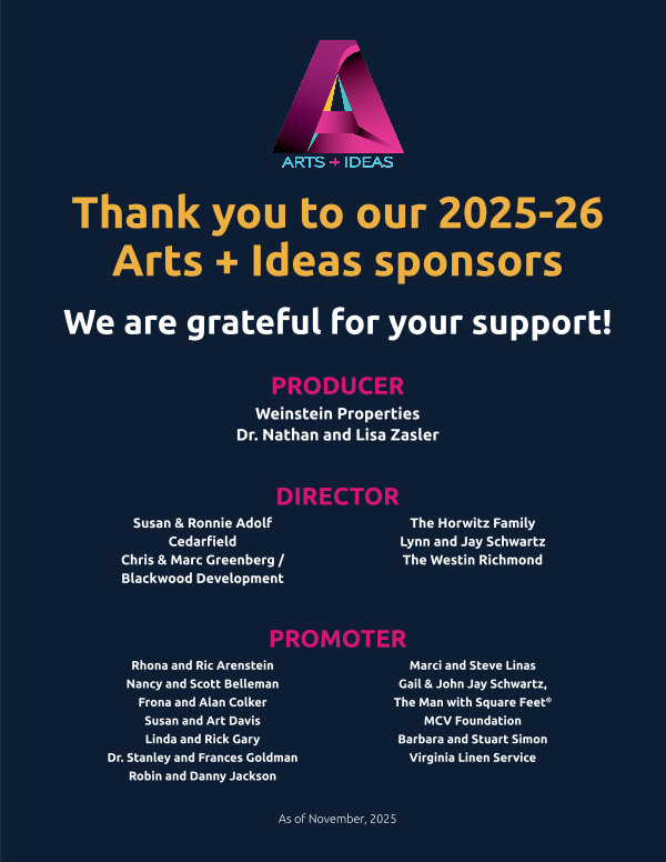 Thank you to our 2025-26 Arts + Ideas sponsors We are grateful for your support!