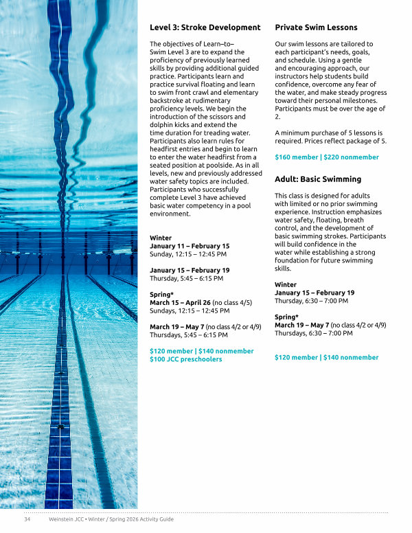 34 Weinstein JCC • Winter / Spring 2026 Activity Guide