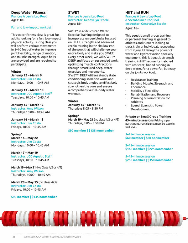 36 Weinstein JCC • Winter / Spring 2026 Activity Guide