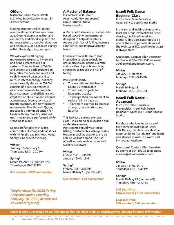 54 Weinstein JCC • Winter / Spring 2026 Activity Guide